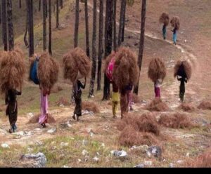 ‌‌  ( जंगलों को आग से बचाने का एक महत्वपूर्ण उपाय पिरूल को एकत्र कर पशुओं का बिछोना (सोतर) बनाया जाता है जिससे यह पिरूल गो मूत्र गोबर में सन कर एक उपयोगी खाद के लिए प्रयोग किया जाता है-फोटो सौजन्य देवकी जोशी)