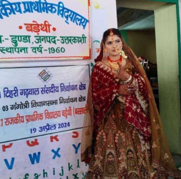 आज बहुत वैवाहिक संस्कार भी सम्पन्न हुए नयी दुल्हनों ने अपने मायके में पहले मतदान किया। उत्तरकाशी जनपद की बडे़थी गांव की अराधना ने पहले वोट डाला फिर फिर विदाई हुई।