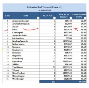 देश में 21 राज्यों में 210 सीटों पर लोकसभा के लिए चुनाव हो रहा है। इसी क्रम में उत्तराखंड राज्य की पांचों सीटों पर 83.37 लाख मतदाता 55 प्रत्याशियों के भाग्य का फैसला ईवीएम में बंद करेंगे। जो चर्चित प्रत्याशी मैदान में हैं, उनमें केंद्रीय राज्य मंत्री अजय भट्ट, पूर्व केंद्रीय राज्य मंत्री अजय टम्टा, भाजपा के राष्ट्रीय मीडिया प्रमुख अनिल बलूनी, पूर्व मुख्यमंत्री त्रिवेंद्र सिंह रावत, कांग्रेस के पूर्व अध्यक्ष गणेश गोदियाल, व पूर्व मुख्यमंत्री हरीश रावत के पुत्र वीरेंद्र रावत शामिल हैं। शुक्रवार को सुबह सात बजे मतदान शुरू हुआ। शाम पांच बजे तक मतदान केंद्र में पहुंचने वालों को मतदान का अवसर दिया गया था। डाक मतपत्र मतगणना के दिन, यानी चार जून सुबह मतगणना शुरू होने तक स्वीकार किए जाएंगे। मतदान केंद्र के भीतर मोबाइल का इस्तेमाल प्रतिबंधित रहा। उत्तराखंड के 83,37914 मतदाता सभी पांच सीटों पर मैदान में उतरे 55 प्रत्याशियों के भाग्य का फैसला करेंगे।