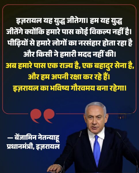 इज़रायल के प्रधानमंत्री बेंजामिन नेतन्याहू का महत्वपूर्ण वक्तव्य —