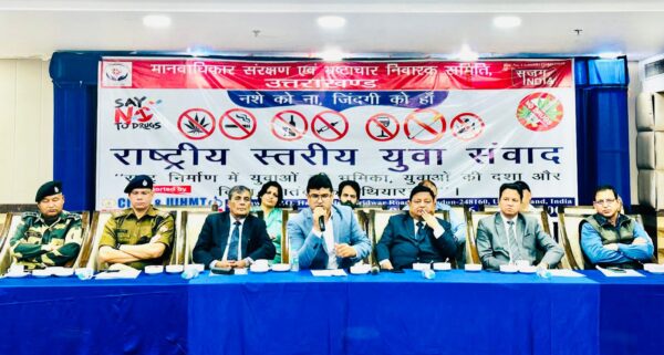 देहरादून : १० मार्च २०२३ मानवाधिकार संरक्षण एवं भ्रष्ट्राचार निवारक समिति देहरादून, उत्तराखण्ड़ द्वारा देहरादून स्थित एक निजी होटल में प्रेस वार्ता का आयोजन किया गया, प्रेस वार्ता में समिति द्वारा विगत 15 वर्षों से नशे के विरूद्ध किए जा रहे कार्यों को लेकर जानकारी दी गई। प्रेसवार्ता को संबोधित करते हुए मानवाधिकार संरक्षण एवं भ्रष्ट्राचार निवारक समिति के अध्यक्ष एडवोकेट ललित मोहन जोशी ने बताया कि युवा संवाद कार्यक्रम के द्वारा वह विगत 15 से अधिक वर्षों से नशा उन्मूलन को लेकर प्रयासरत हैं, 2005 में हल्द्वानी से उन्होंने इस अभियान को आरंभ किया था, और अब तक लाखों युवाओं को नशे के विरूद्ध जागरूक कर चुके हैं। आगे भी उनका यह अभियान निरंतर जारी रहेगा। उन्होंने बताया कि कुछ समय पूर्व ही वे प्रदेश भर के सभी जनपदों में 50 से अधिक विद्यालयों में छात्र-छात्राओं से संवाद करके आये हैं, जनवरी माह में उन्होंने 2023 के प्रथम चरण का आरंभ ऋषिकेश, देहरादून से करते हुए टिहरी गढ़वाल, पौड़ी गढ़वाल, उत्तरकाशी, चमोली गढ़वाल, बागेश्वर कपकोट, पिथौरागढ़, मुनस्यारी, ऊधमसिंह नगर, नैनीताल, अल्मोड़ा हरिद्वार में 40 हजार से अधिक युवाओं से सीधा संवाद कर नशे के दुष्प्रभावों से अवगत कराते हुए नशे से दूर रहने की शपथ दिलाई।